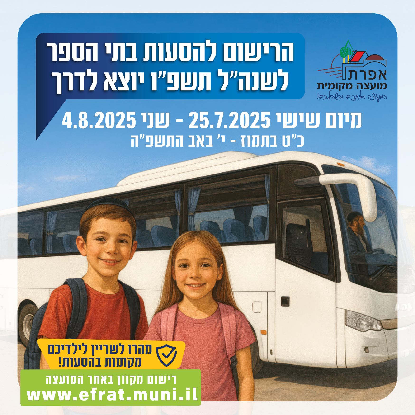 הרישום להסעות בית הספר לשנה"ל תשפ"ו